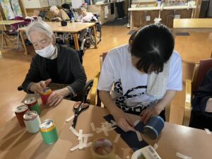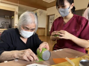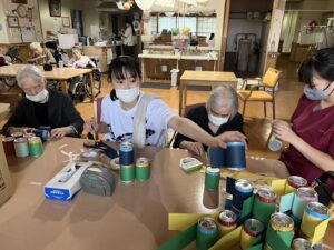 缶に画用紙を張り付けて、どんなレクをするのでしょうか!?