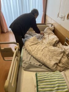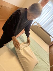 F子さんのお手伝いはこれだけにとどまらず、ベッドメイキングまでもお手伝い!
