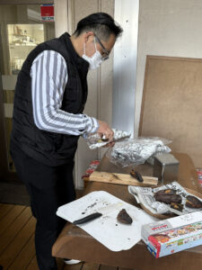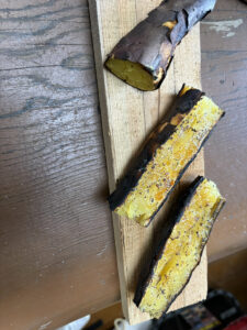 石焼き芋職人は施設長が現在襲名しております。本日の芋銘柄は「シルクスイート」